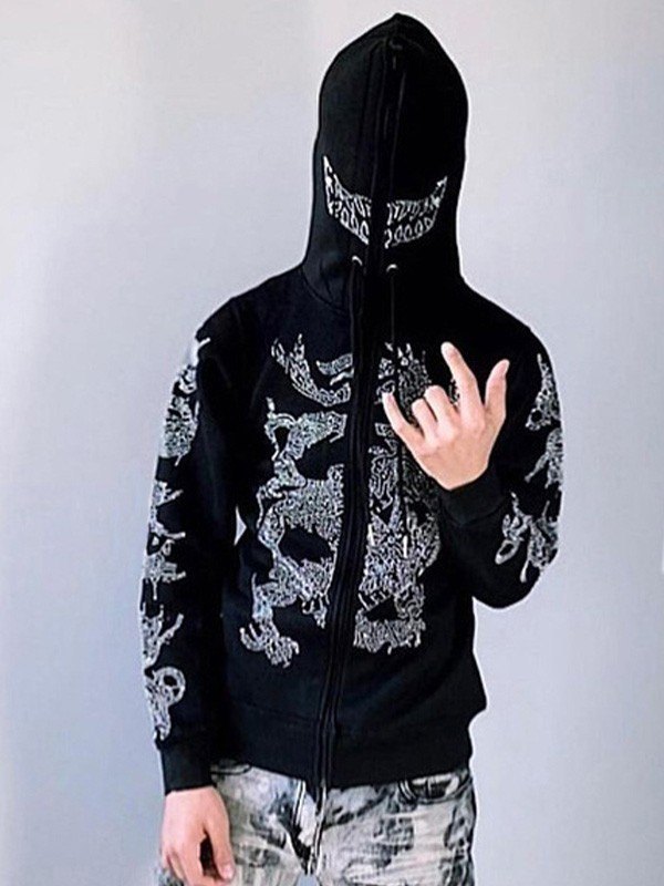 Kapuzenpullover mit Reißverschluss für Herren mit Strassdetail