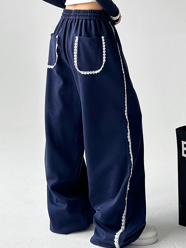 Hose mit weitem Bein und Patchwork-Spitzenbesatz