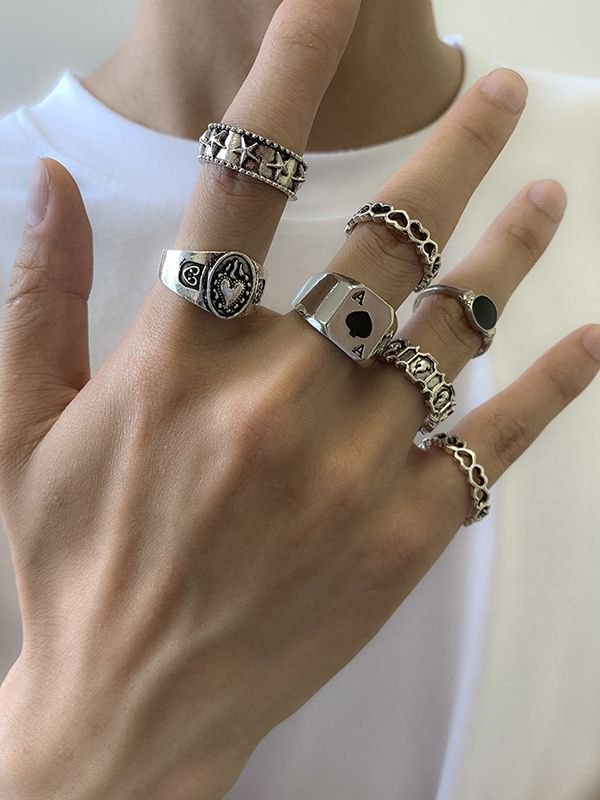 Punk-Rebe-Muster-Silberring
