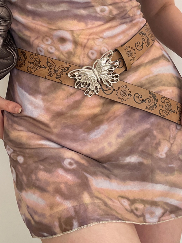 Vintage-Gürtel mit geprägter Schmetterlingsschnalle aus Metall