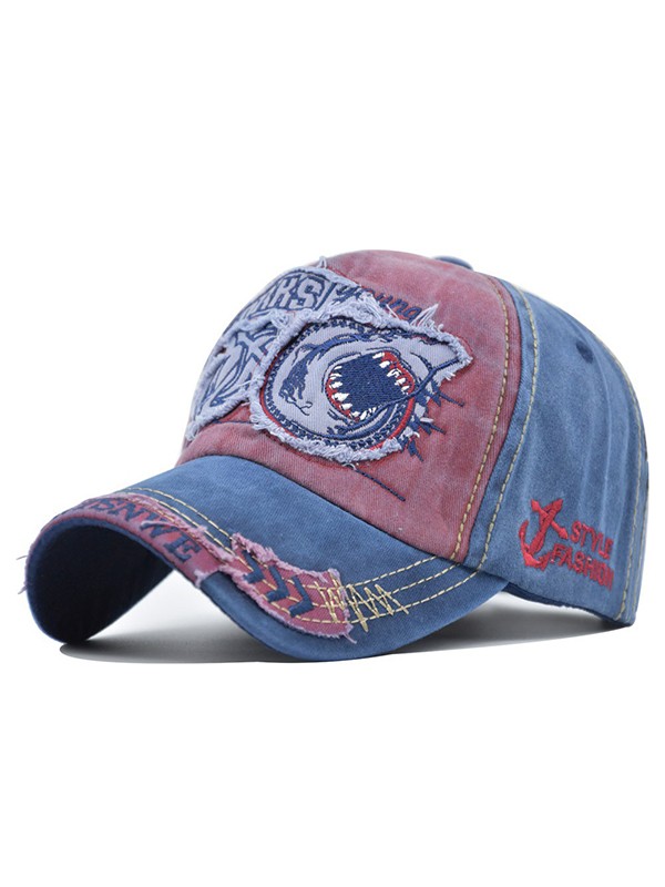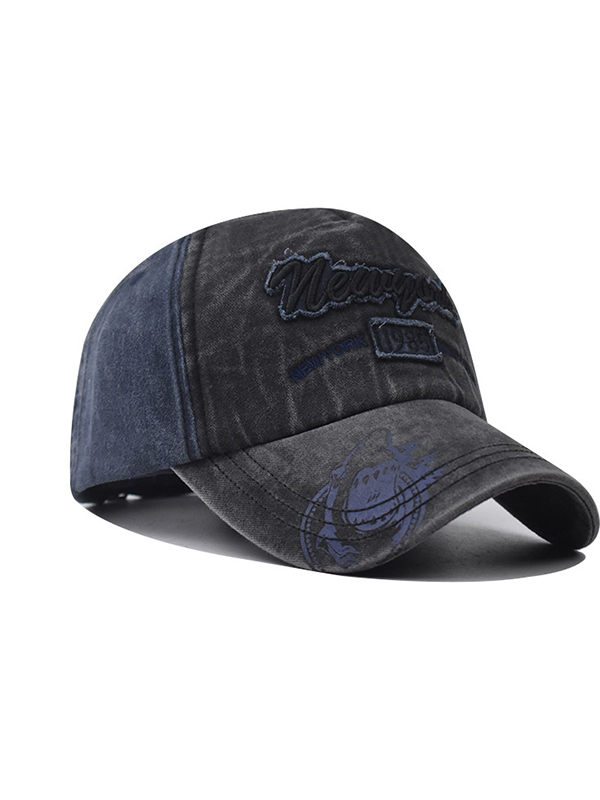 Mit Buchstaben bestickte Distressed-Denim-Baseballkappe