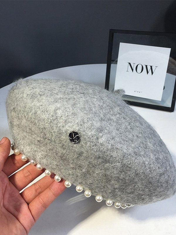 Kunstperlenverzierte Baskenmütze aus Wollmischung