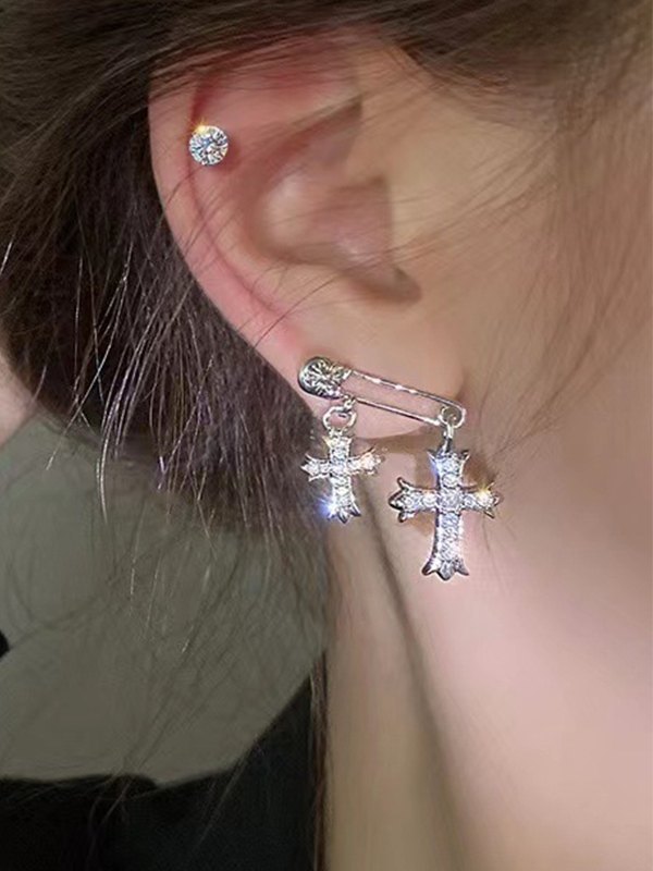 Sicherheitsnadel-Strass-Kreuz-Charme-Ohrringe