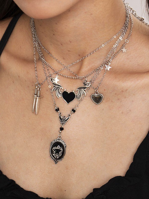 5-teiliges Punk-Halsketten-Set mit gemischten Anhängern