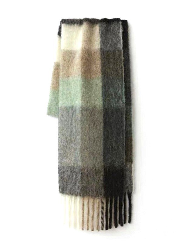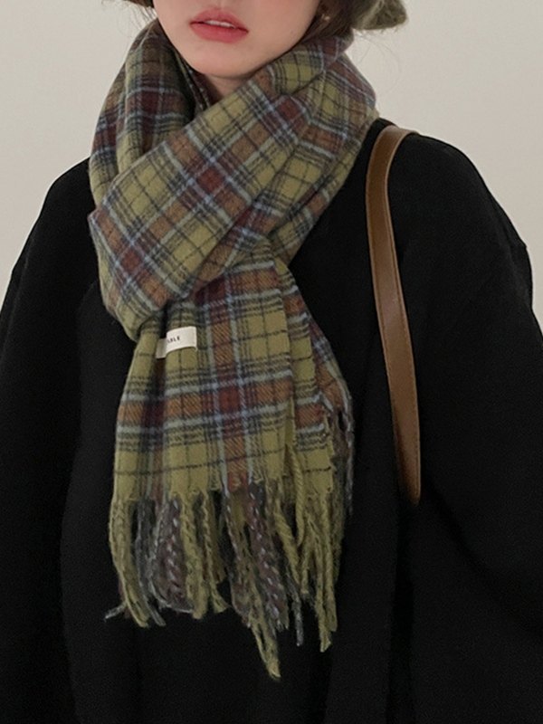 Vintage grün karierter Schal mit Fransen