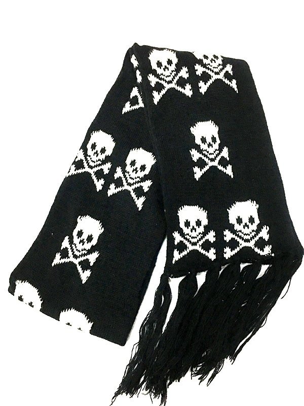 Gestrickter Schal mit Totenkopf-Jacquard und Fransen