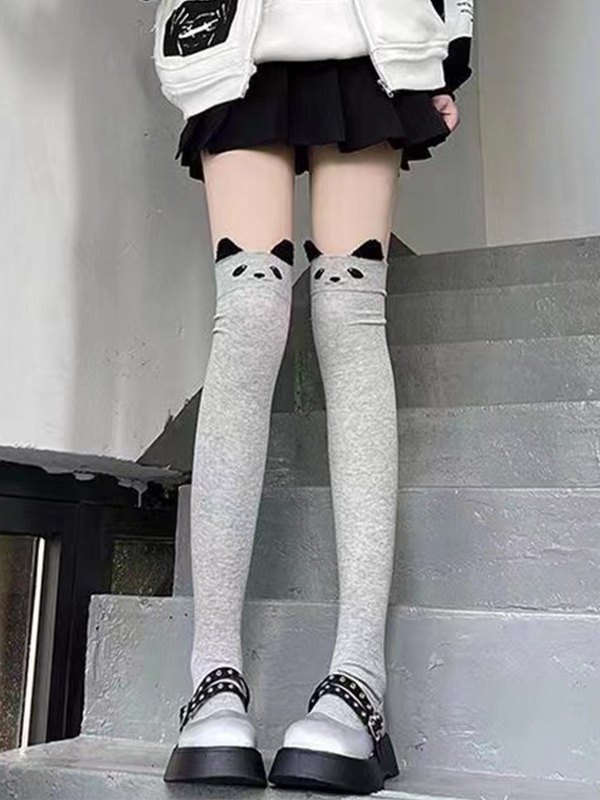 Oberschenkelhohe Socken mit Cartoon-Muster