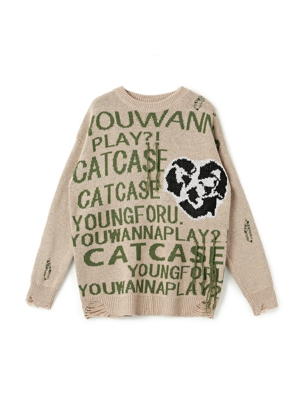 Herren-Pullover mit Buchstaben-Print und zerrissenem Design