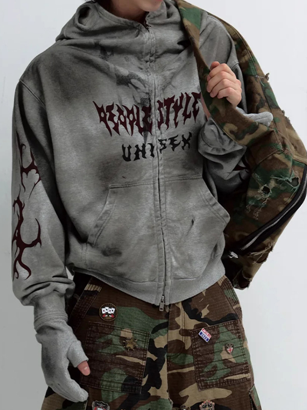 Übergroßer Kapuzenpullover mit verschwommenem Grafikdruck und Reißverschluss
