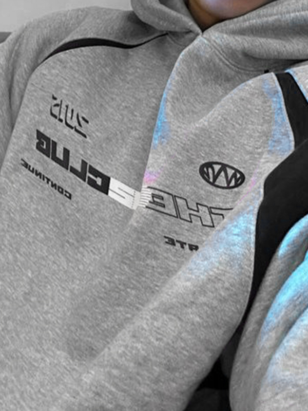 Übergroßer Kapuzenpullover mit Buchstaben-Print und Spleißmuster für Herren