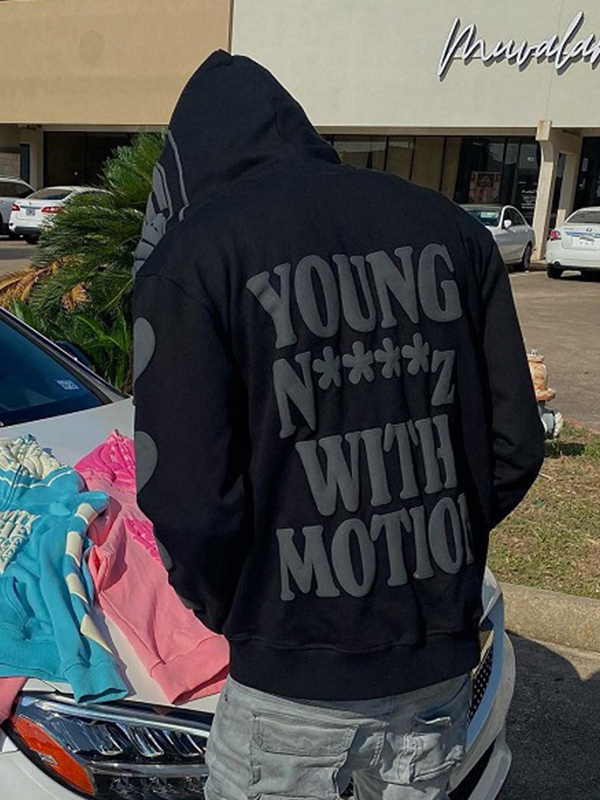 Übergroßer Kapuzenpullover mit lockerem Aufdruck und langen Ärmeln für Herren