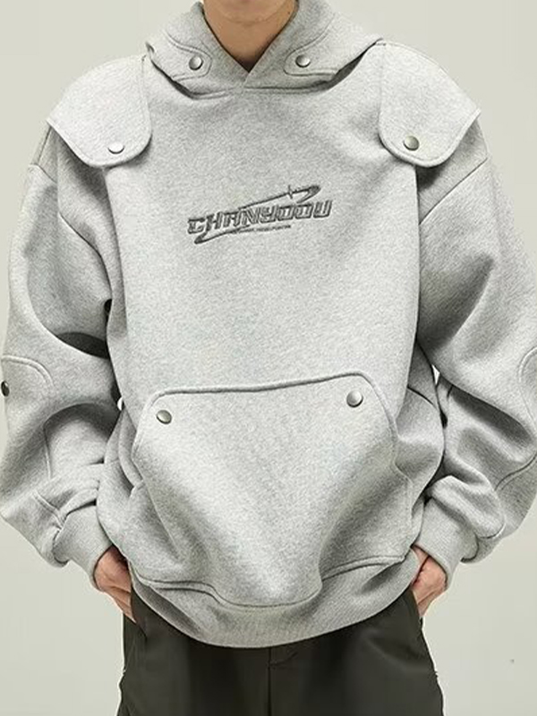 Übergroßer Kapuzenpullover mit langen Ärmeln und dunklem Print für Herren
