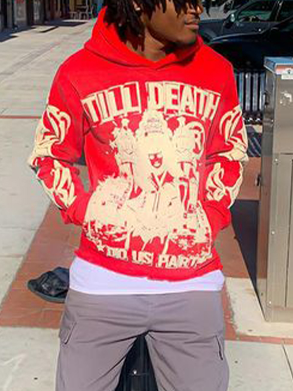 Übergroßer Kapuzenpullover mit Hip-Pop-Schädel-Print für Herren