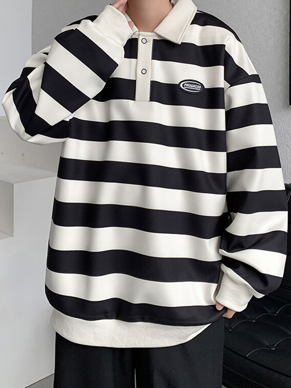 Herren-Sweatshirt mit Vintage-Streifen und Hemdkragen
