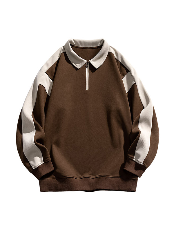 Kontrastfarbenes Herren-Sweatshirt mit Reverskragen und halbem Reißverschluss