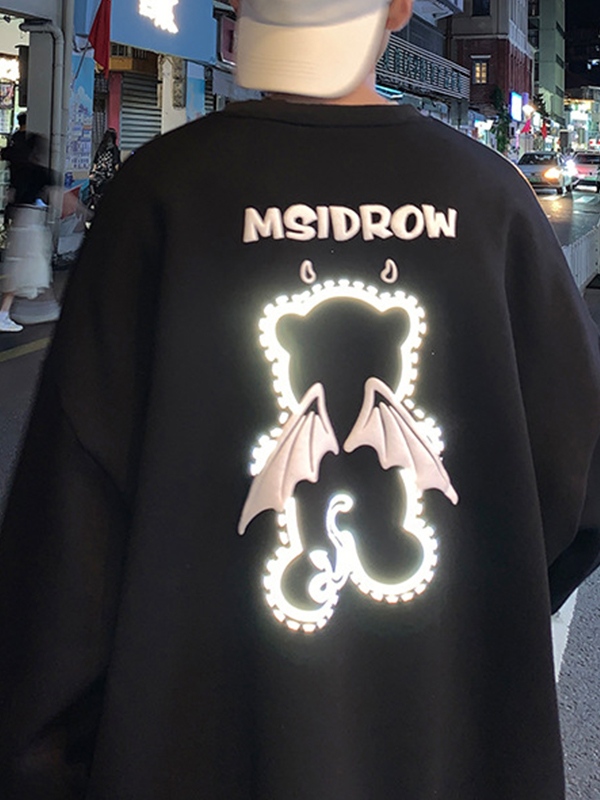 Reflektierendes Herren-Sweatshirt mit Bärenmuster und Rundhalsausschnitt