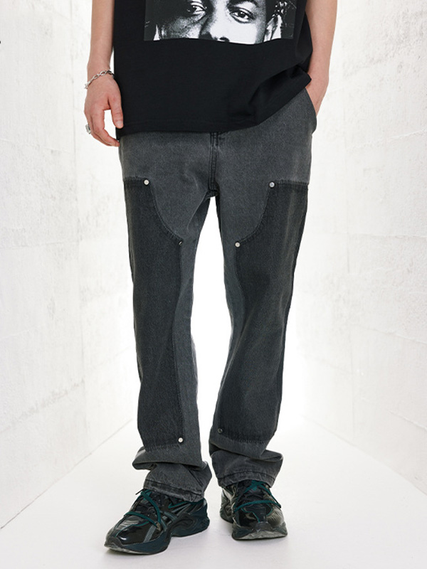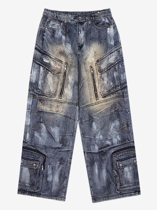 Lockere, verwaschene Cargo-Jeans mit weitem Bein und unregelmäßiger Passform