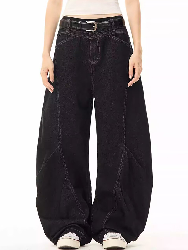 High Street – Schwarze, leicht ausgestellte, lockere Jeans „Scimitar“