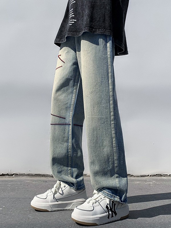 Genähte Distressed-Jeans mit geradem Bein für Herren