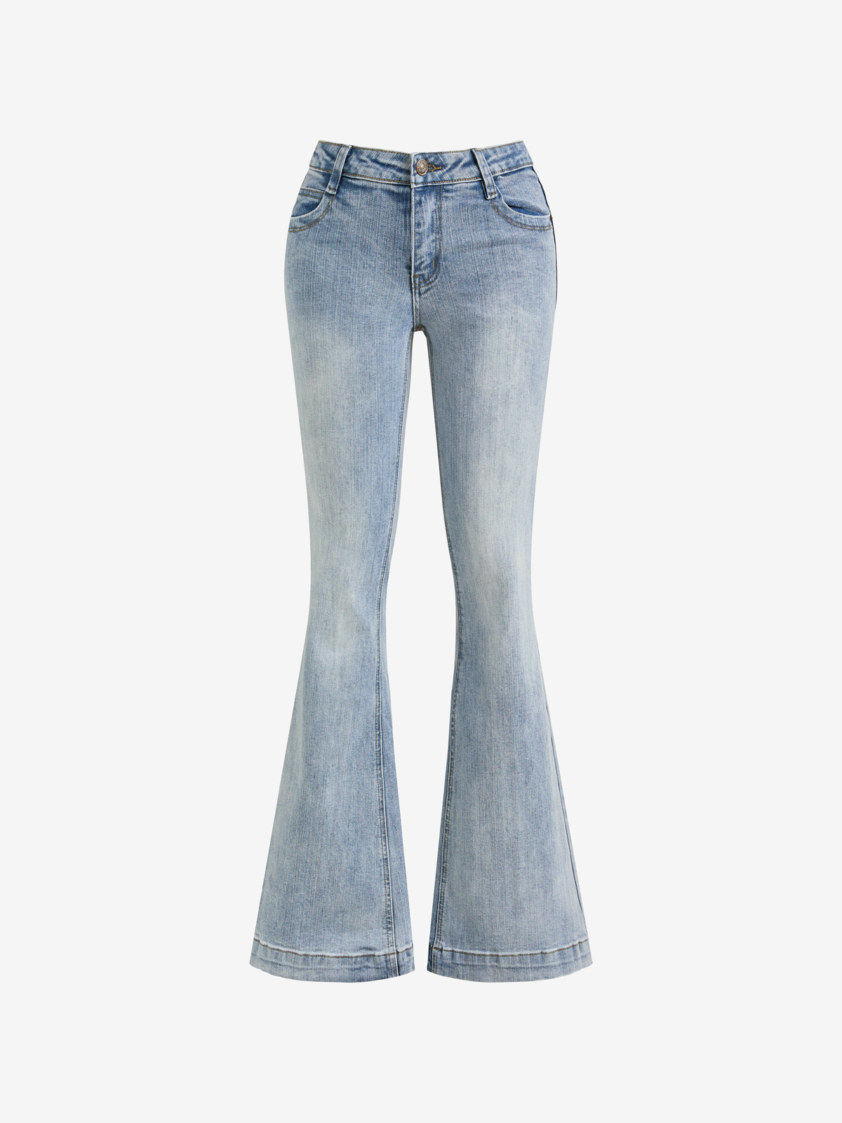 Elastische, lockere, schlankmachende Boyfriendjeans im Micro-Flare-Stil