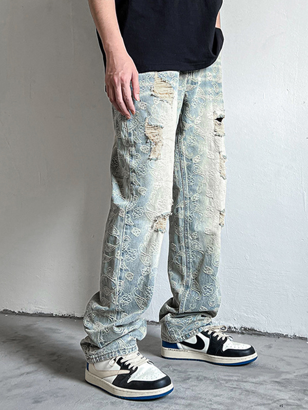 Zerrissene, lockere Herrenjeans mit Cashew-Blumenmuster