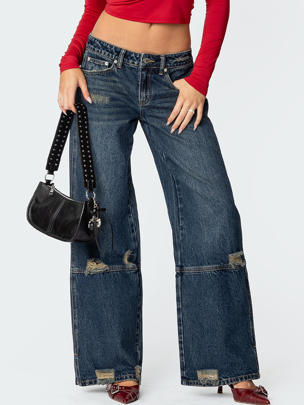 Distressed-Boyfriendjeans mit Schlitzen und niedriger Taille