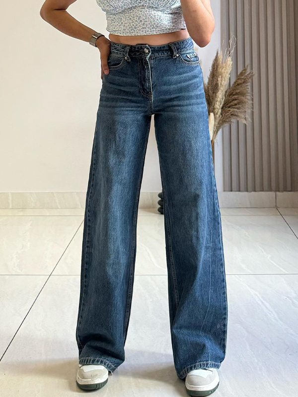 Vintage Gelb Schlamm Buchstaben Lose Gerade Jeans