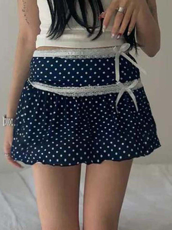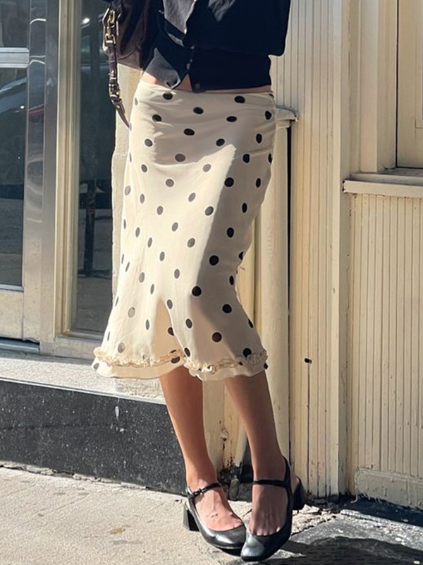 Maxirock mit Vintage-Punkten und Holzbesatz