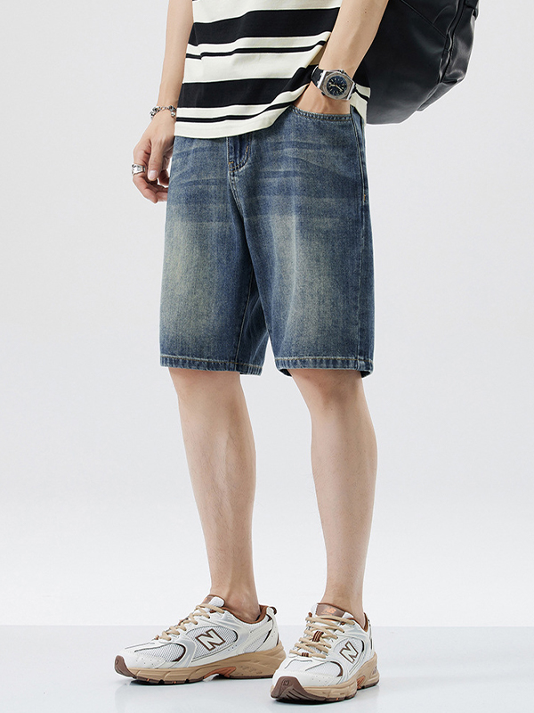 Lockere, gerade Jeansshorts für Herren im Washed-Look