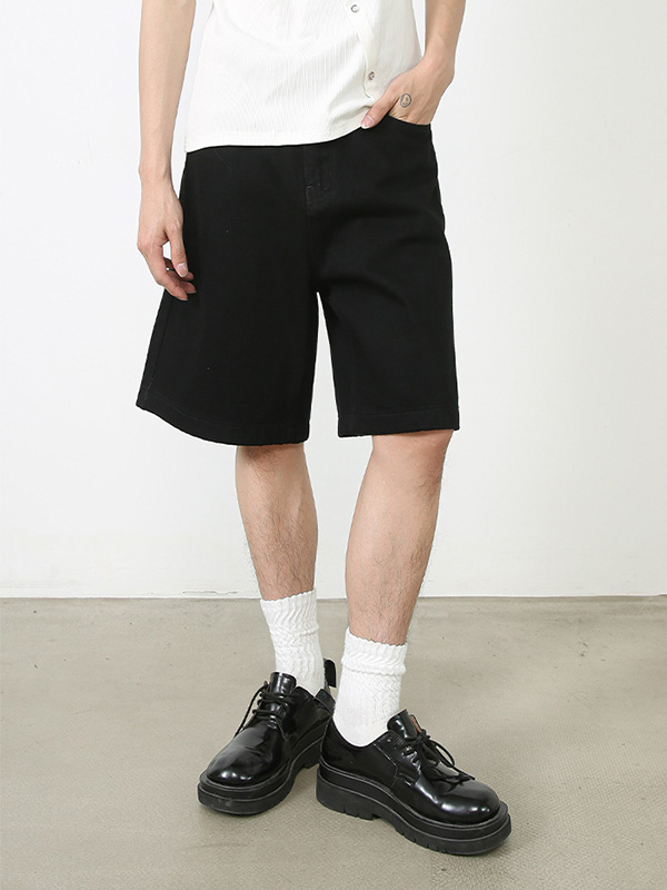Gerade geschnittene, lockere Jeansshorts mit weitem Bein