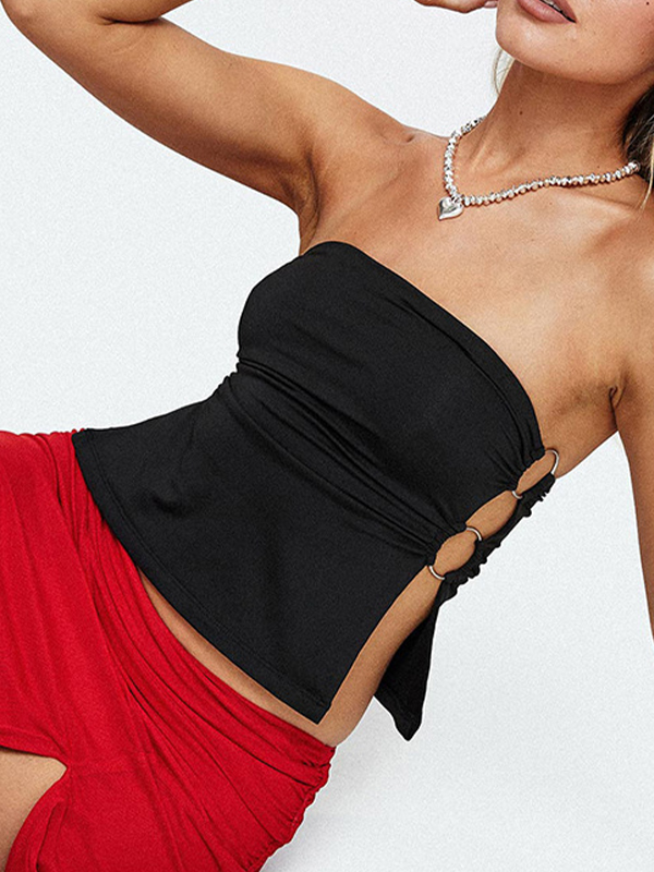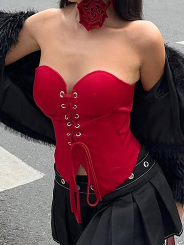 Bandeau-Top mit Spitzen-Patchwork und Schleife