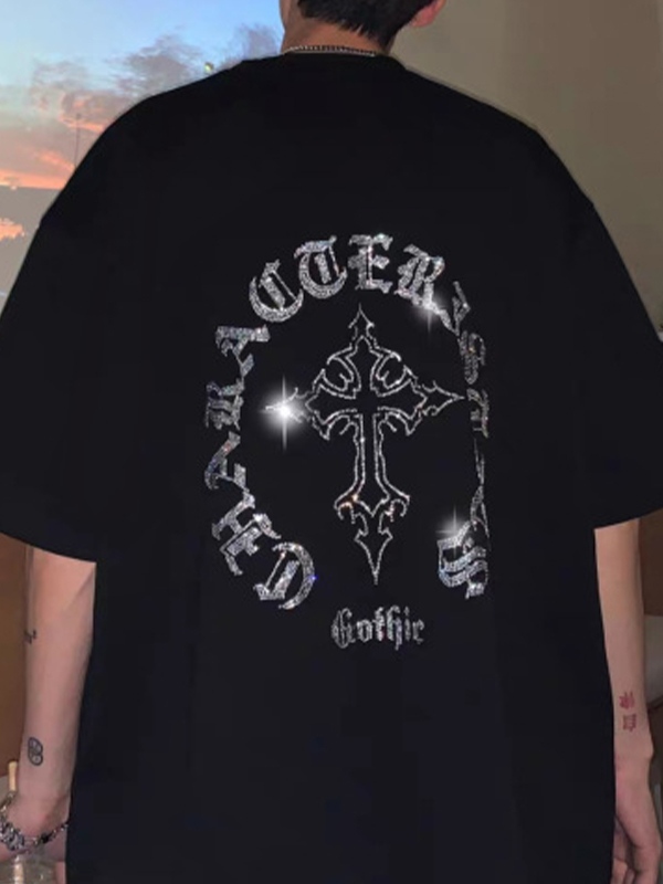 Herren-Kurzarm-T-Shirt mit Kreuz-Strasssteinen