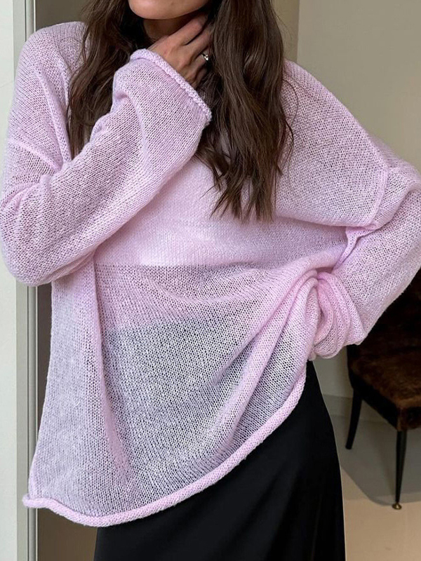 Einfarbige, lockere Strickwaren mit langen Ärmeln