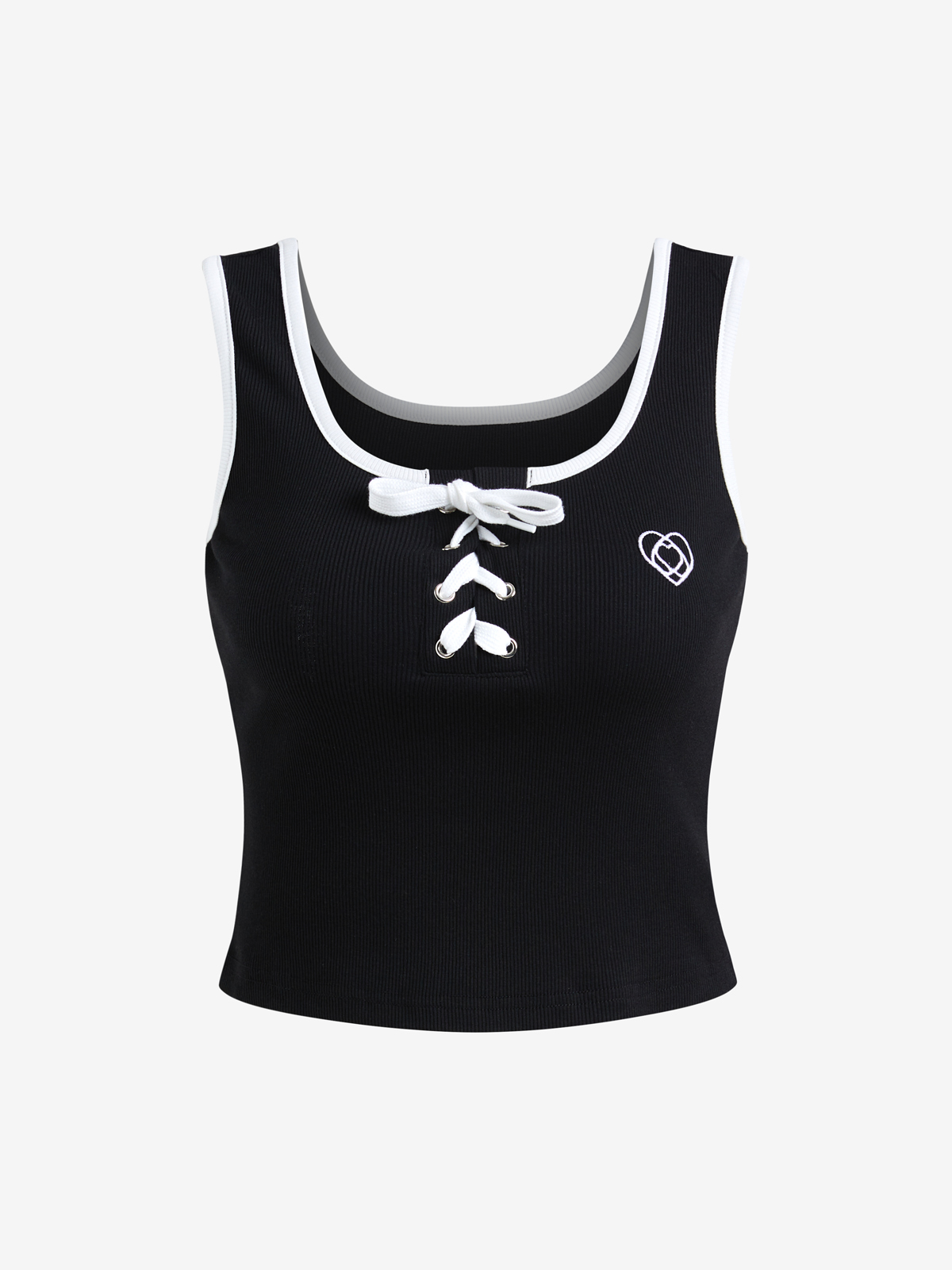 Tanktop mit Patchwork-Ausschnitt und Spitze