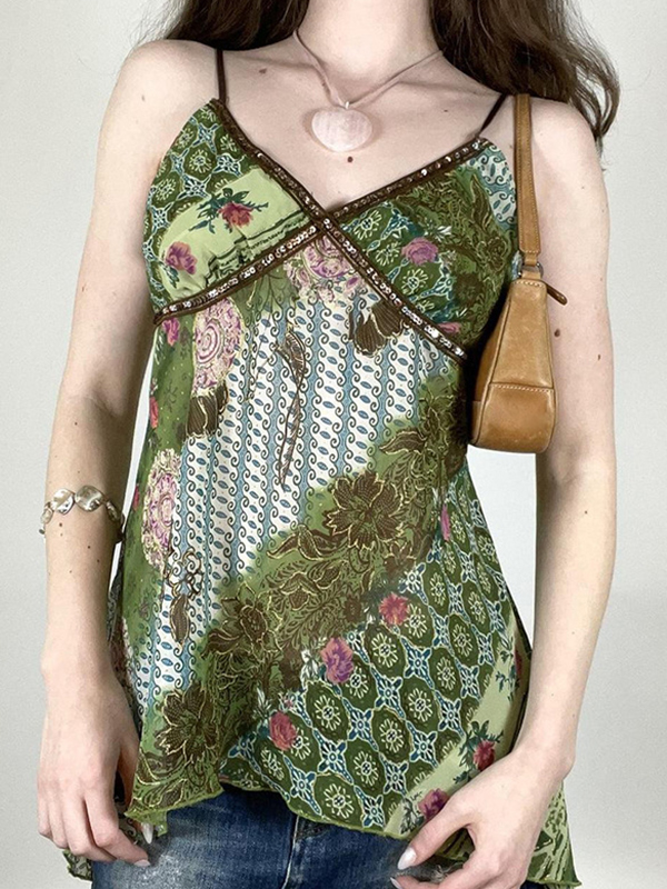 Y2K Vintage Cami Top mit Blumendruck