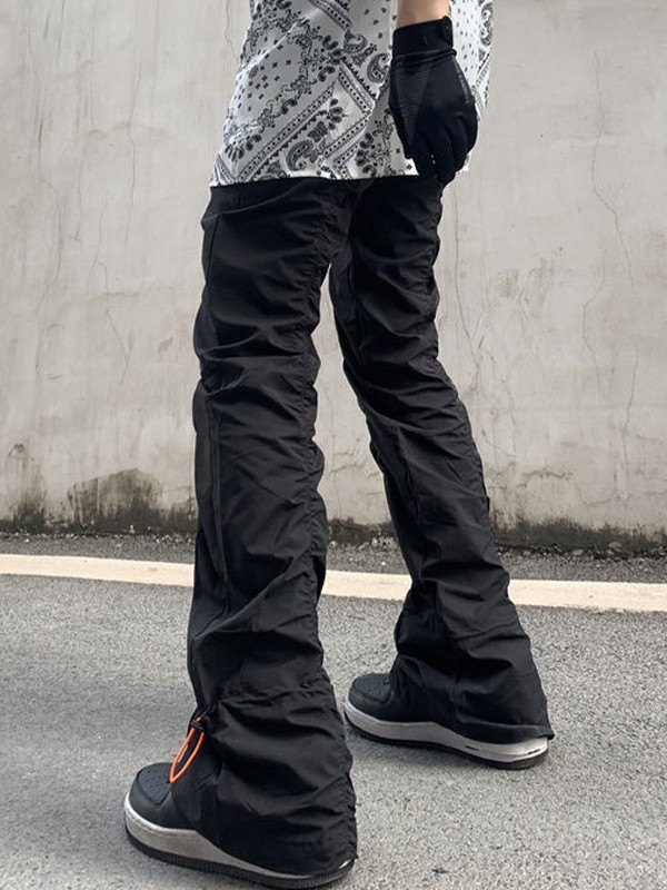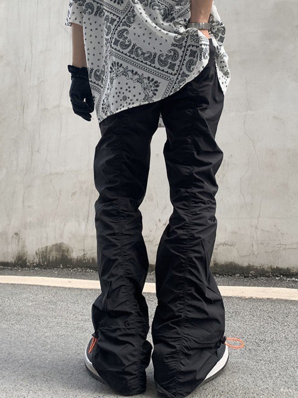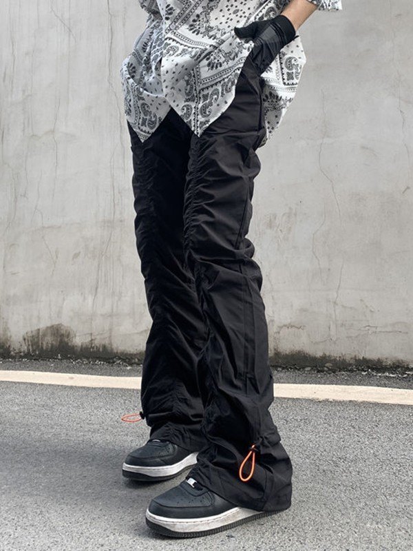 Beschreibung: Diese schicke City Boy Cargohose ist leicht ausgestellt Silhouette, mit Kordelzugdetail entlang des Beins, mit funktionellen Taschen und vollständig gerafftem Design.