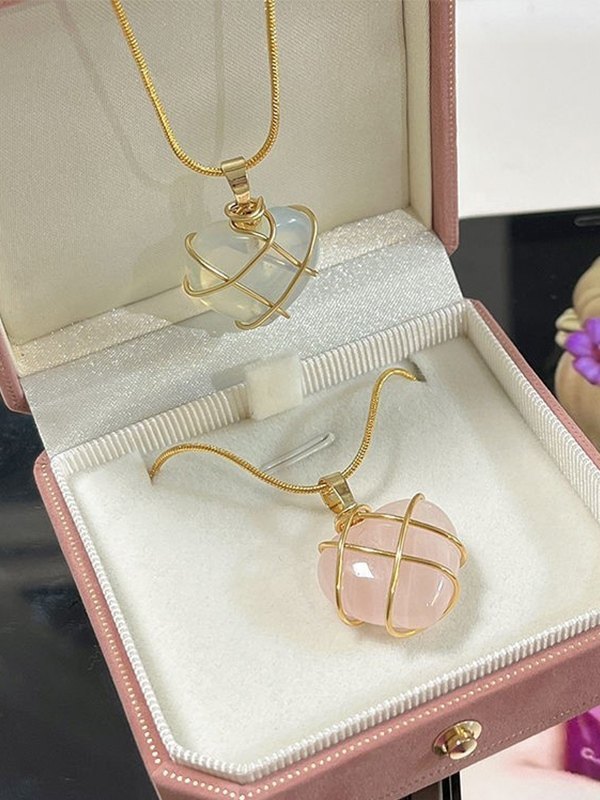 Klobige Steinherz-Anhänger-Halskette