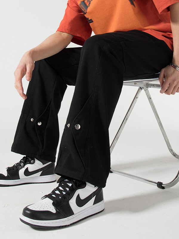 Lockere Jeans im High-Street-Stil mit schwarzen Knöpfen und Knöpfen