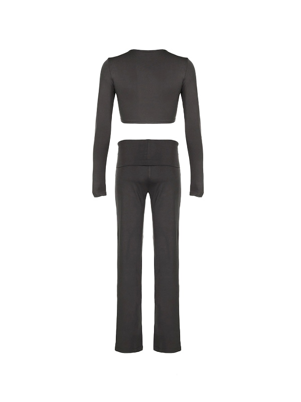 Set aus einfarbigem, verkürztem, schmalem Langarm-T-Shirt und ausgestellter Jogginghose