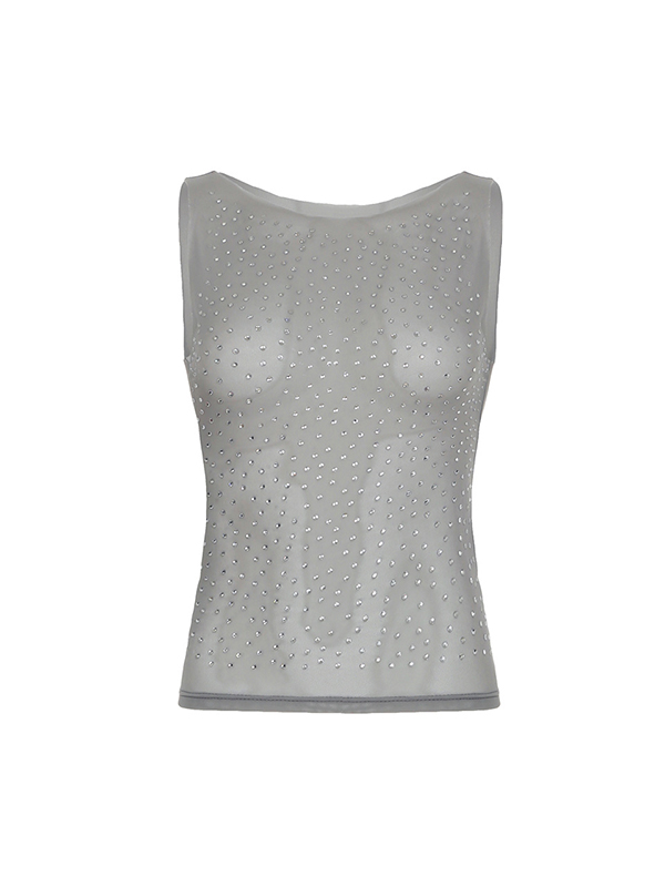 Sexy durchsichtiges Tanktop mit Strasssteinen