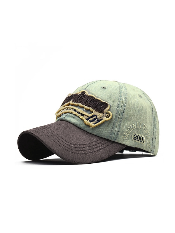 Mit Buchstaben bestickte Distressed-Denim-Baseballkappe