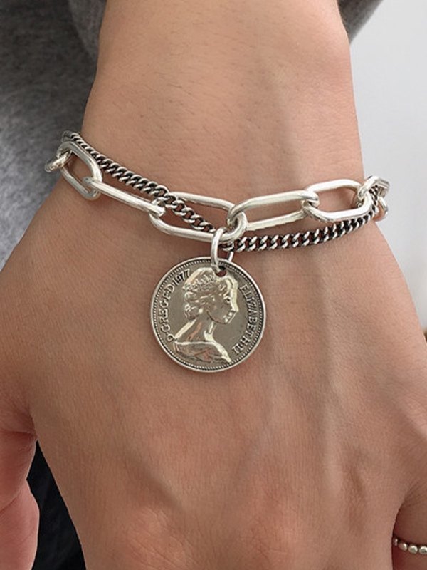 Doppellagiges Knebelarmband mit Münzanhänger