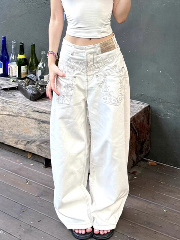Retro-Boyfriendjeans mit Pflaumenblüten-Stickerei