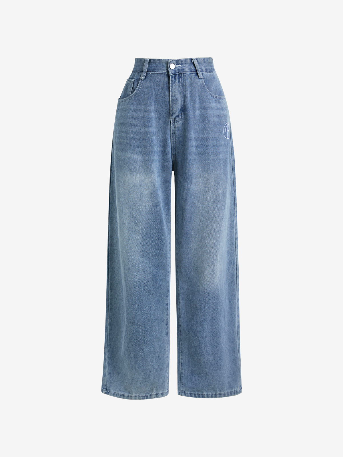 Amerikanische Retro High Street Boyfriendjeans mit weitem Bein
