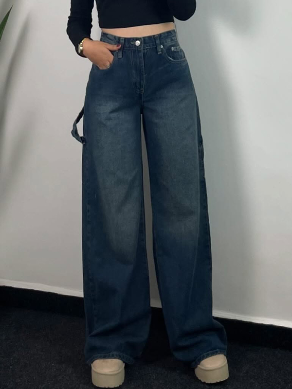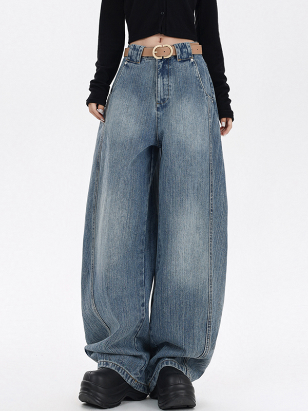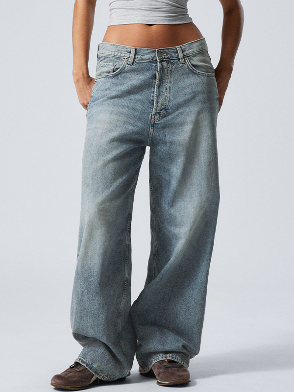 Lässige Sichel-Boyfriendjeans mit weitem Bein