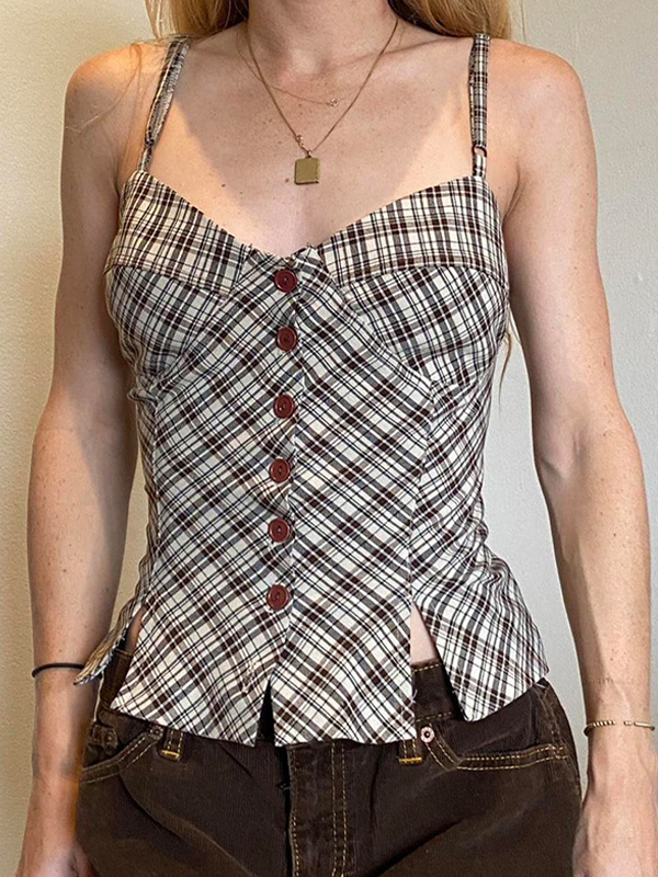 American Retro – Kariertes Camisole-Top mit Knopfleiste und Schlitz