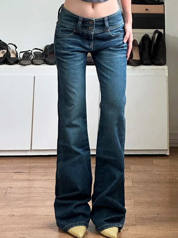 Weite Taille, geknöpfte Slim Fit Schlagjeans