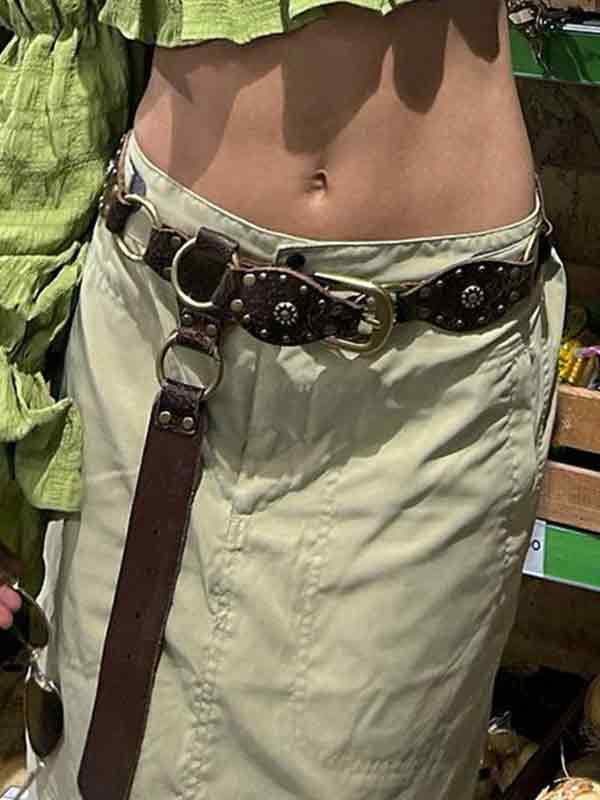 Vintage Nieten-Ausschnitt-Ring-Leder-Patchwork-Schnalle-Gürtel