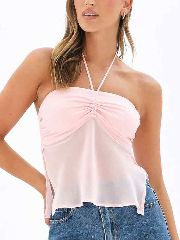 Neckholder-Weste mit Netzschlitz und Plissee-Design