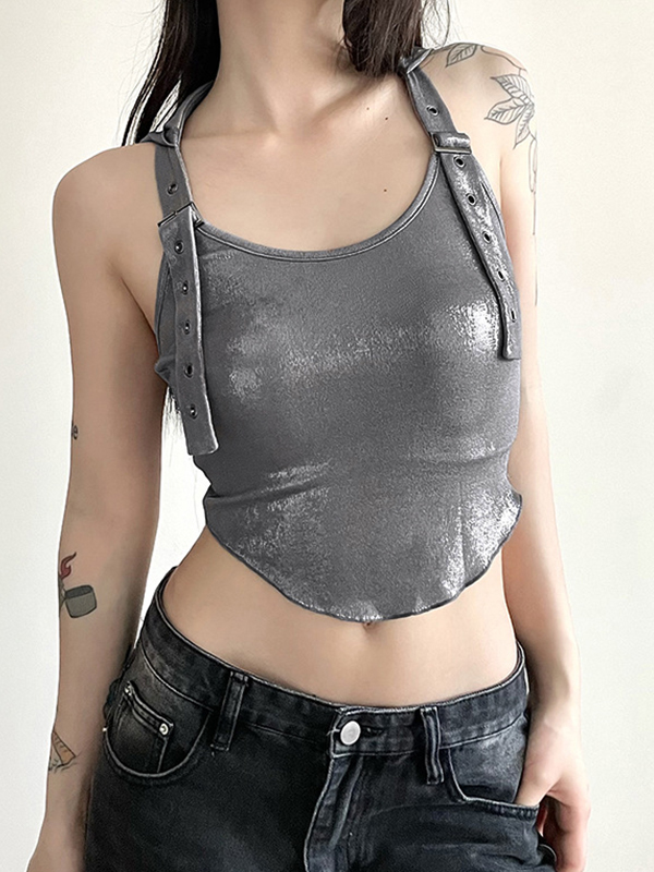 Neckholder-Weste mit metallischer Ösenschnalle und Kapuze